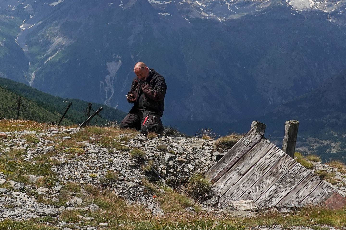 Fort Turra ist ein ziemlich zerfallenes Fort mit einer recht großen Ausdehnung. Das grandiose hier oben ist die fantastische Aussicht rund herum aber besonders zum Lac Cenis. Rechts neben dem Lac Cenis kann man die Schotterstraße erkennen die wir nachher fahren werden, am Ende etwa auf Höhe der Staumauer und auf gleicher Höhe mit dem Fort de Variselle zweigt dann der Weg nach Rechts zum Lac Roterel ab.