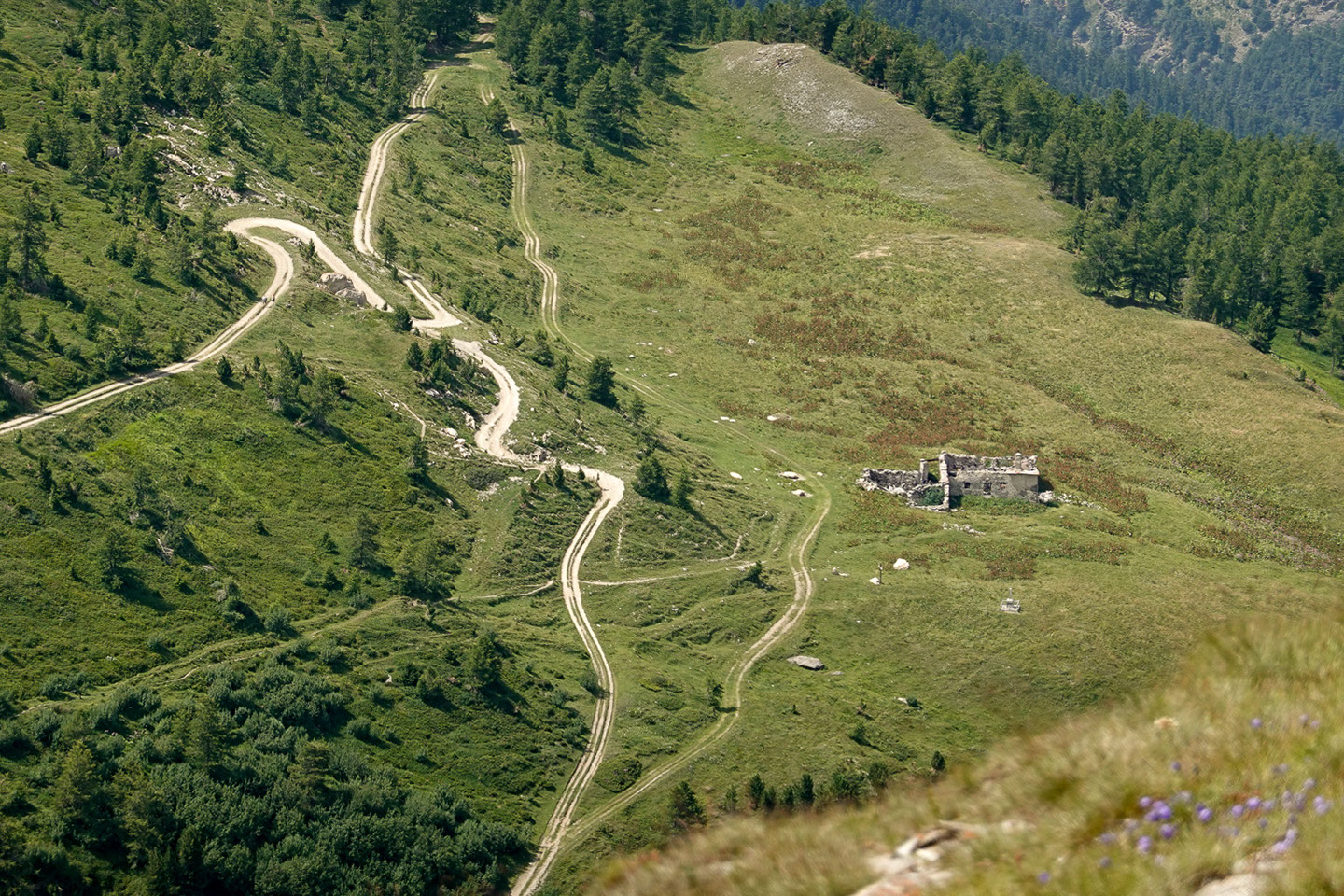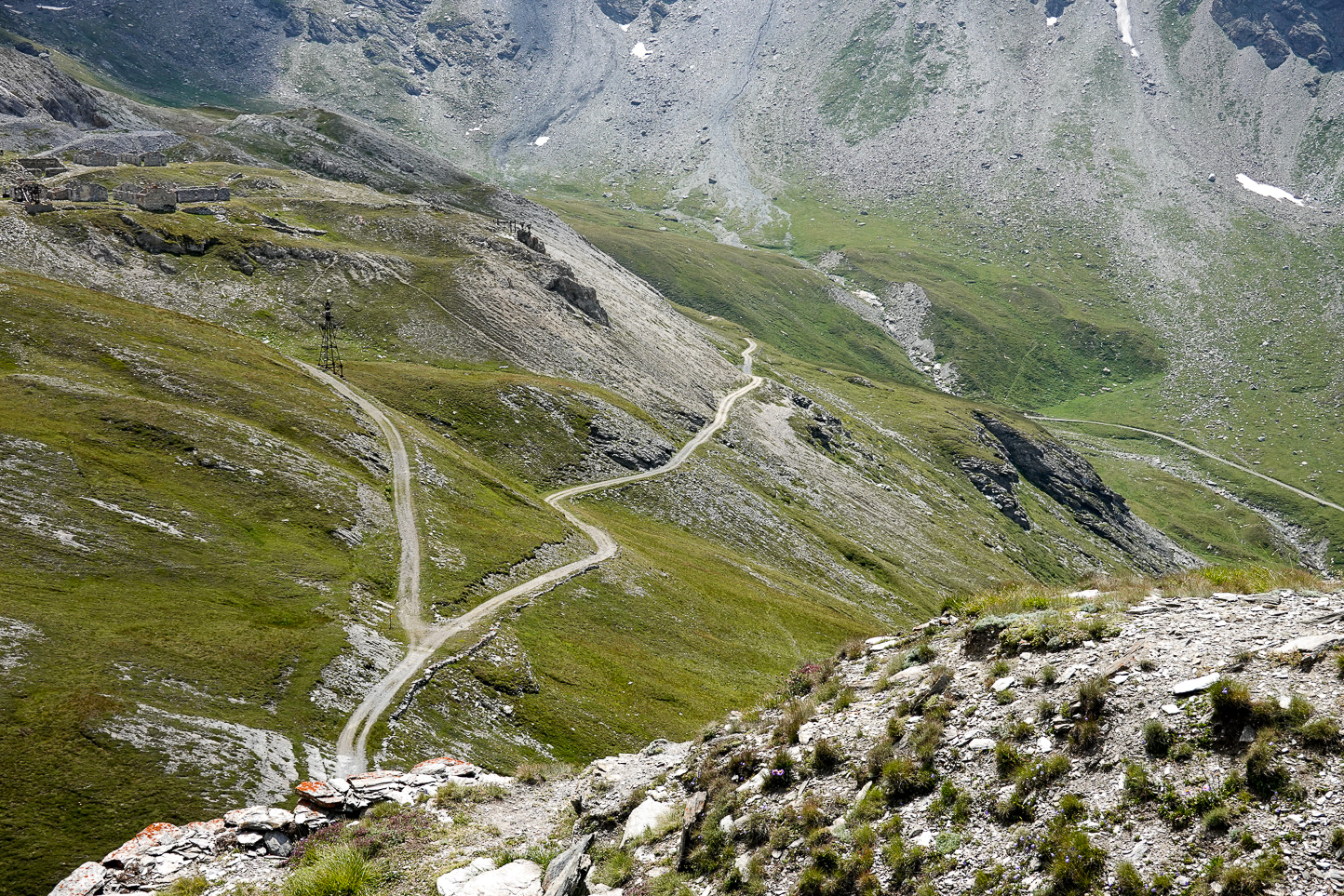 Unten: Auf der gegenüberliegend Seite Richtung Osten Col de la Met zu erkennen (etwas links der Bildmitte). Auch eine Denzel 4-5 Strecke und der ist schon anspruchsvoller anzufahren wie das Fort Turra.