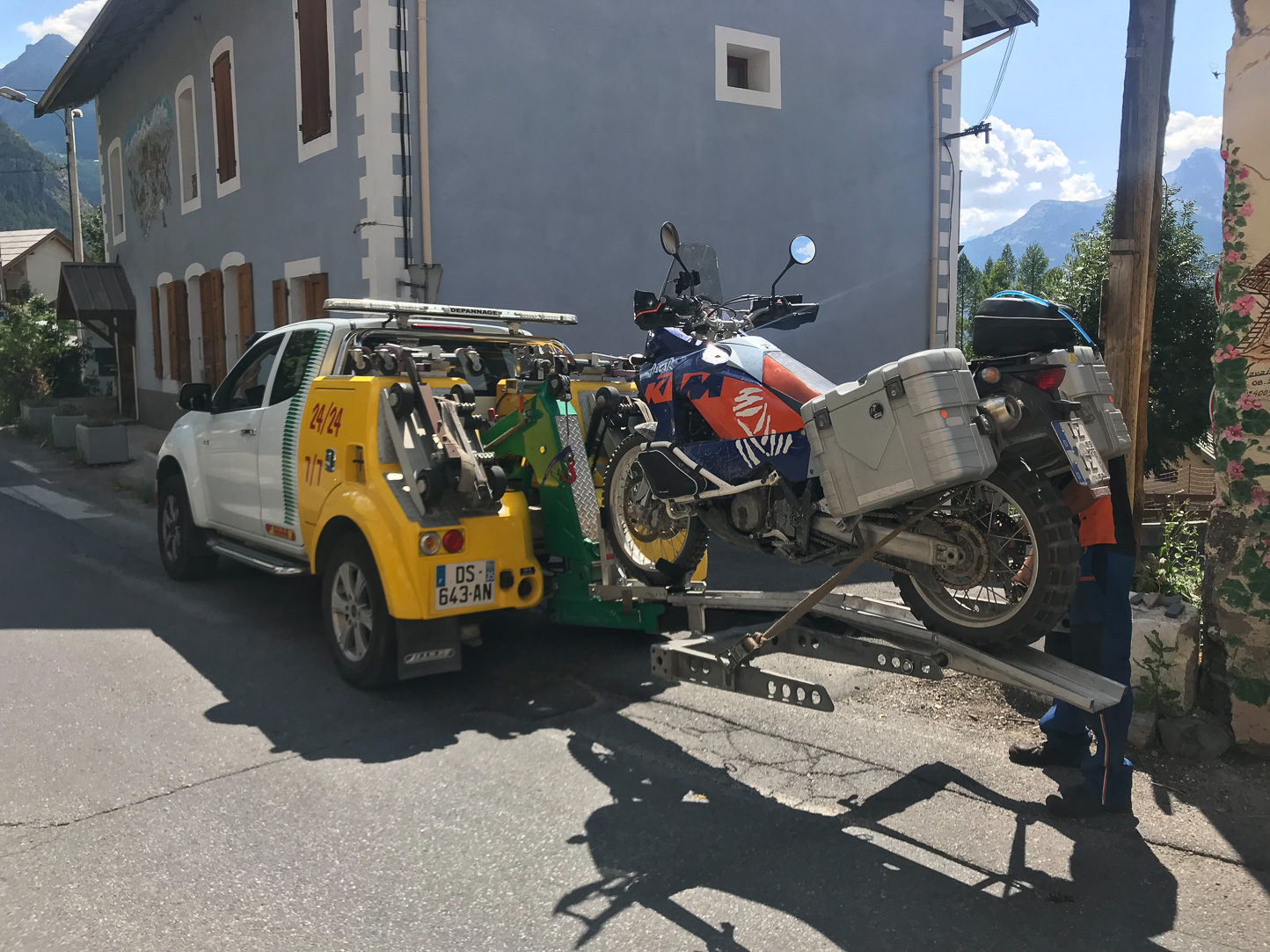 Mittlerweile war schon später Nachmittag, wir bleiben über Nacht hier und klären was zu klären ist. Ein nettes Hotel oberhalb von Briancon in Puy Saint-Pierre hatte 3 Zimmer für uns. André und ich brachten unser Gepäck hoch und ich holte danach Kai mit meiner 690er bei der Werkstatt ab.