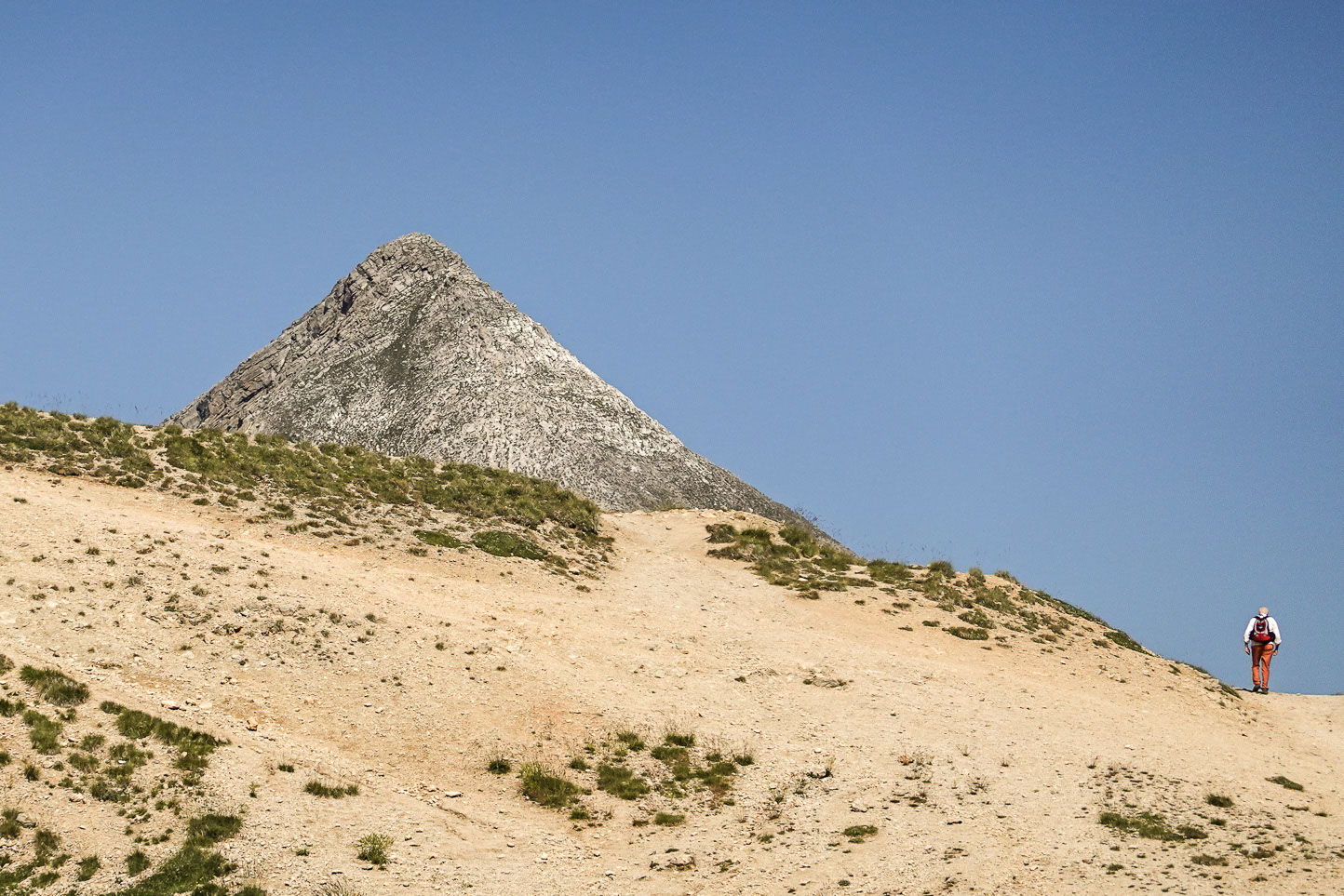 Hier liegen immer mal ein paar Steine herum, der Blick zur Bergseite sieht nicht nur bedrohlich aus, hier kommt immer mal was runter, es ist bedrohlich.