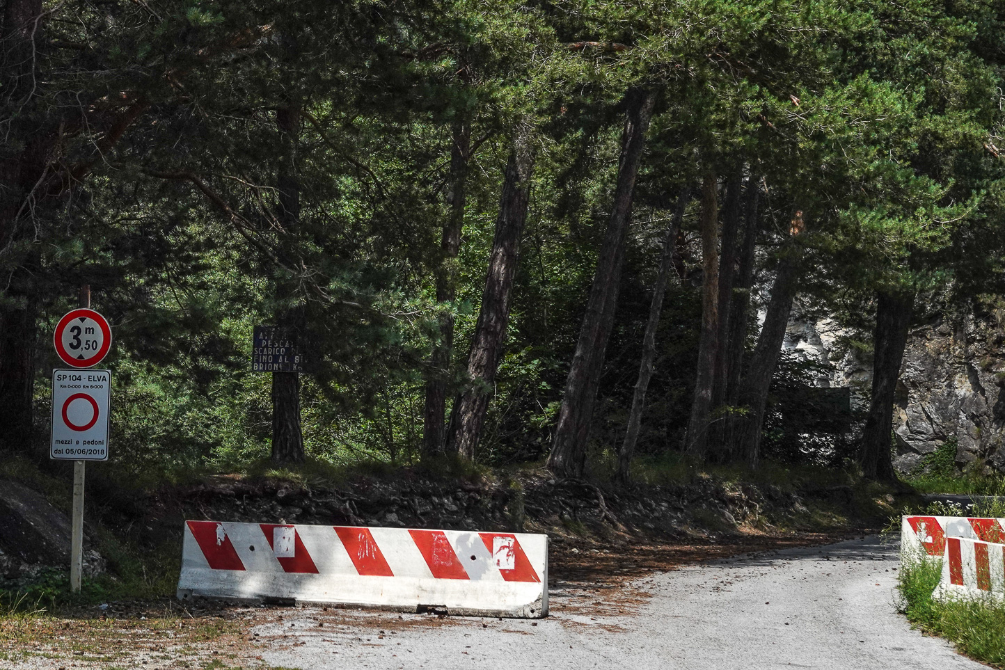 Da reden wir nicht lange und schieben die Bikes schnell rüber. Unten im Tal kurz vor Ponte Marmora sehen wir das die Route gesperrt ist. So einen Sperre, nicht mal ein Schild, gab es oben bei Elva.
