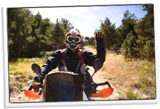 Das Problem, da wo wir hoch kamen dürfen wir ja nicht mehr runter, was wir aber erst hier festgestellt haben. Ehrlich gesagt wollen wir beide da auch nicht mehr lang fahren. Die andere Seite, da kamen wir nicht hoch, ihr erinnert Euch, die Schranke. Nicht verzagen, die Spuren hier deuten darauf hin das öfters Mehrspurfahrzeuge hier entlang gefahren sind, also geht es auf einem recht breiten Wirtschaftsweg auf der Seite des Berges herunter wo wir vorhin vor der Schranke standen.